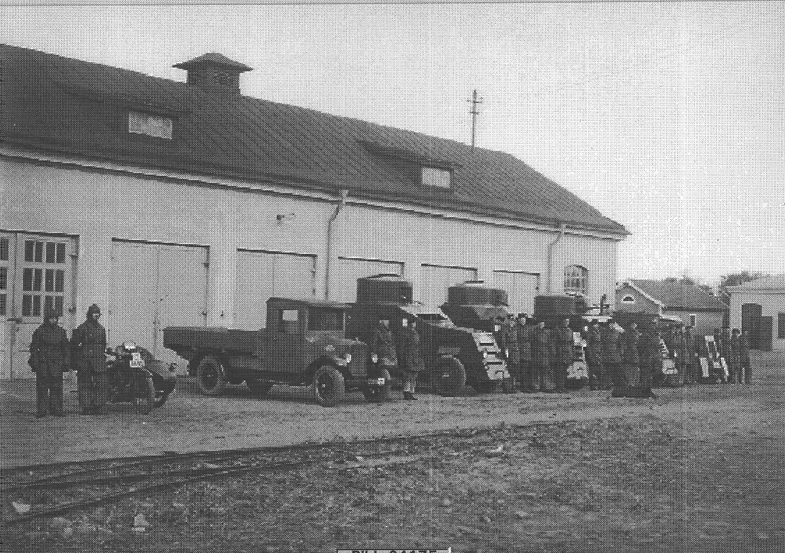 K3. Pansarbilavd uppställd framför motorfordonsgaraget.