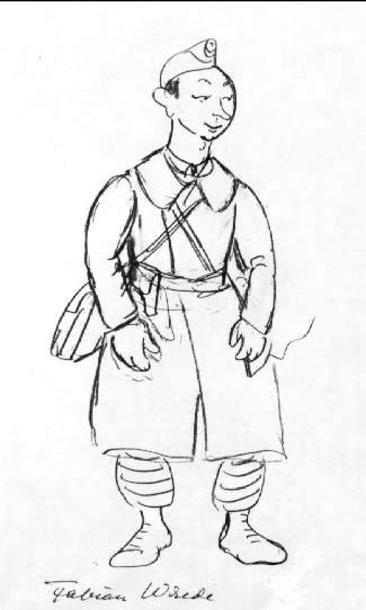 Fänrik Fabian Wrede, officer K 3, signalutbildad. Son till överste Henrik Wrede, tjänsteförättande sekundchef på K 3, under första delen av 40-talet.