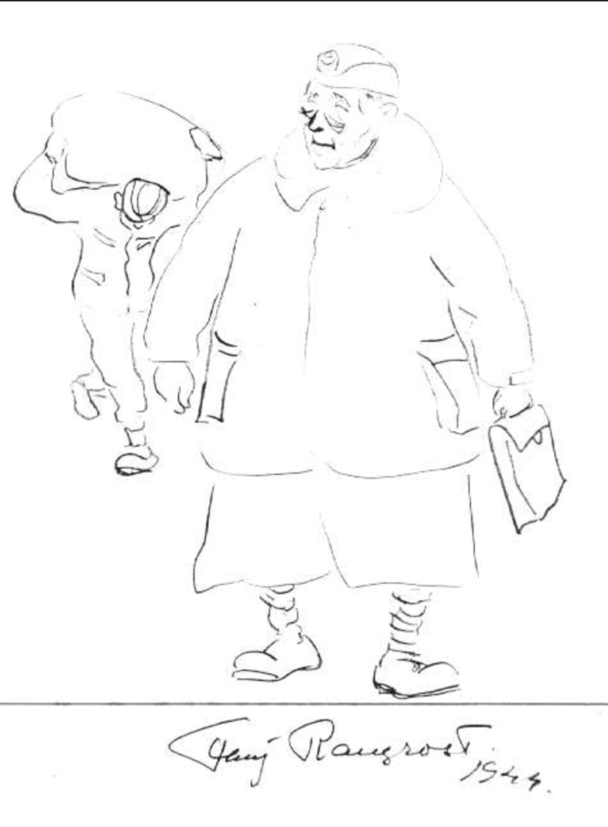 Livregementets husarer, K3. Karikatyr av officer.