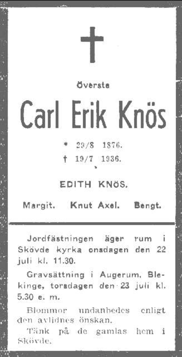 Överste C E Knös var sekundchef K 3 1926-1935.