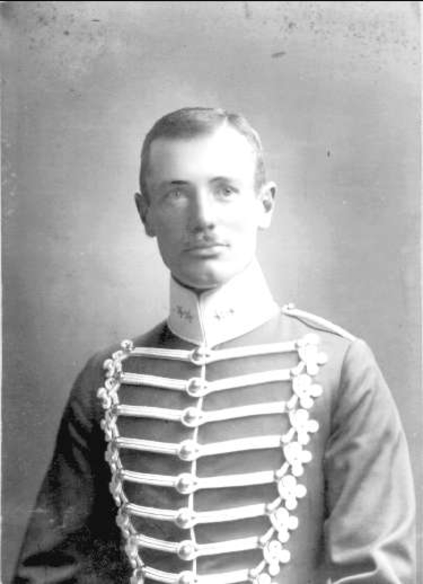 Porträtt av Johan Montgomery-Cederhielm, löjtnant vid livhusarerna, iförd uniform m/ä