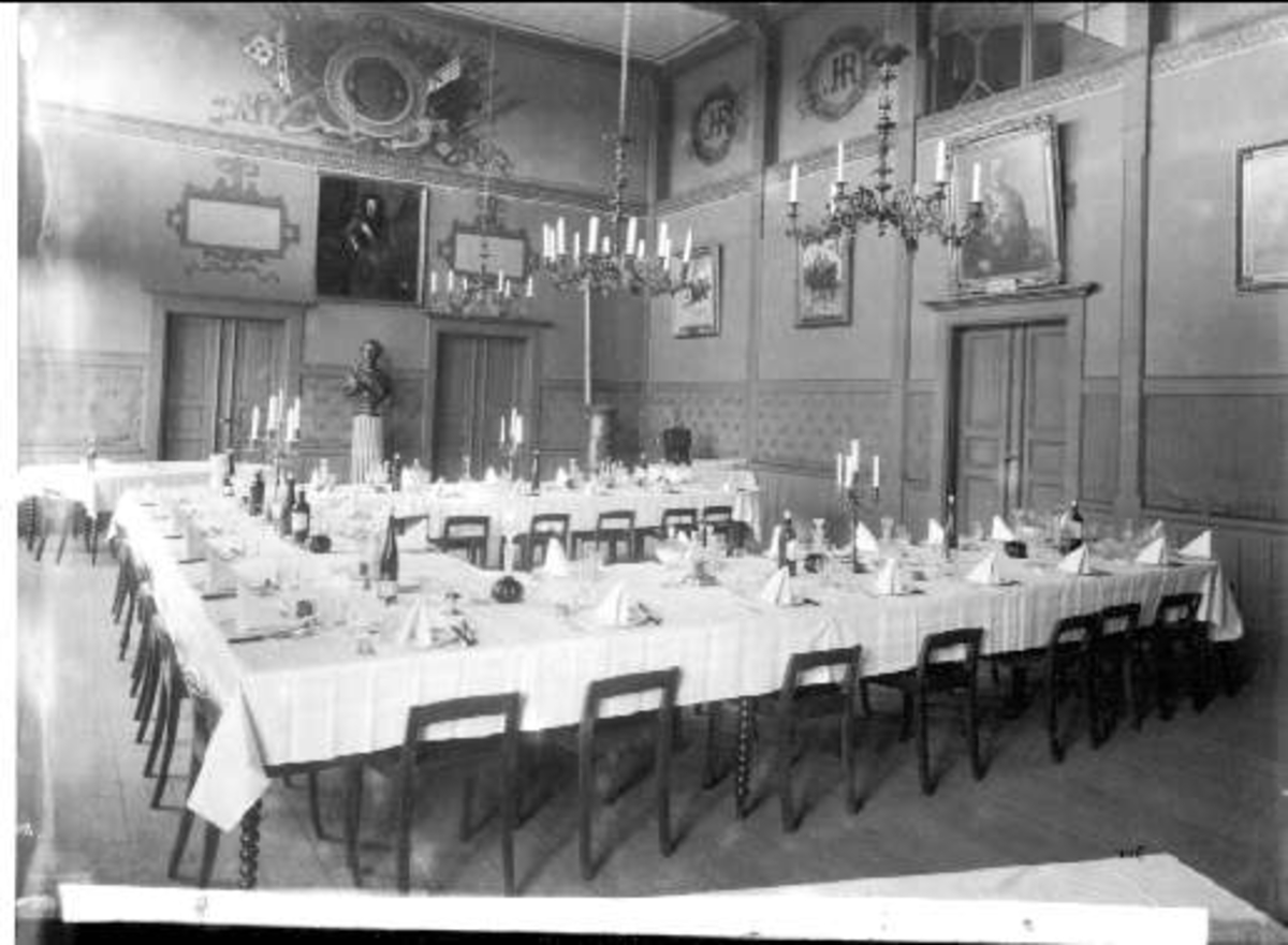 Livhusarernas officersmäss dukat till middag.