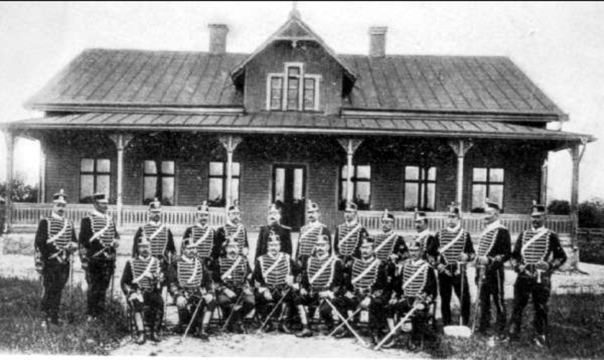 Underofficerskåren framför underofficersmässen på Sanna Hed.