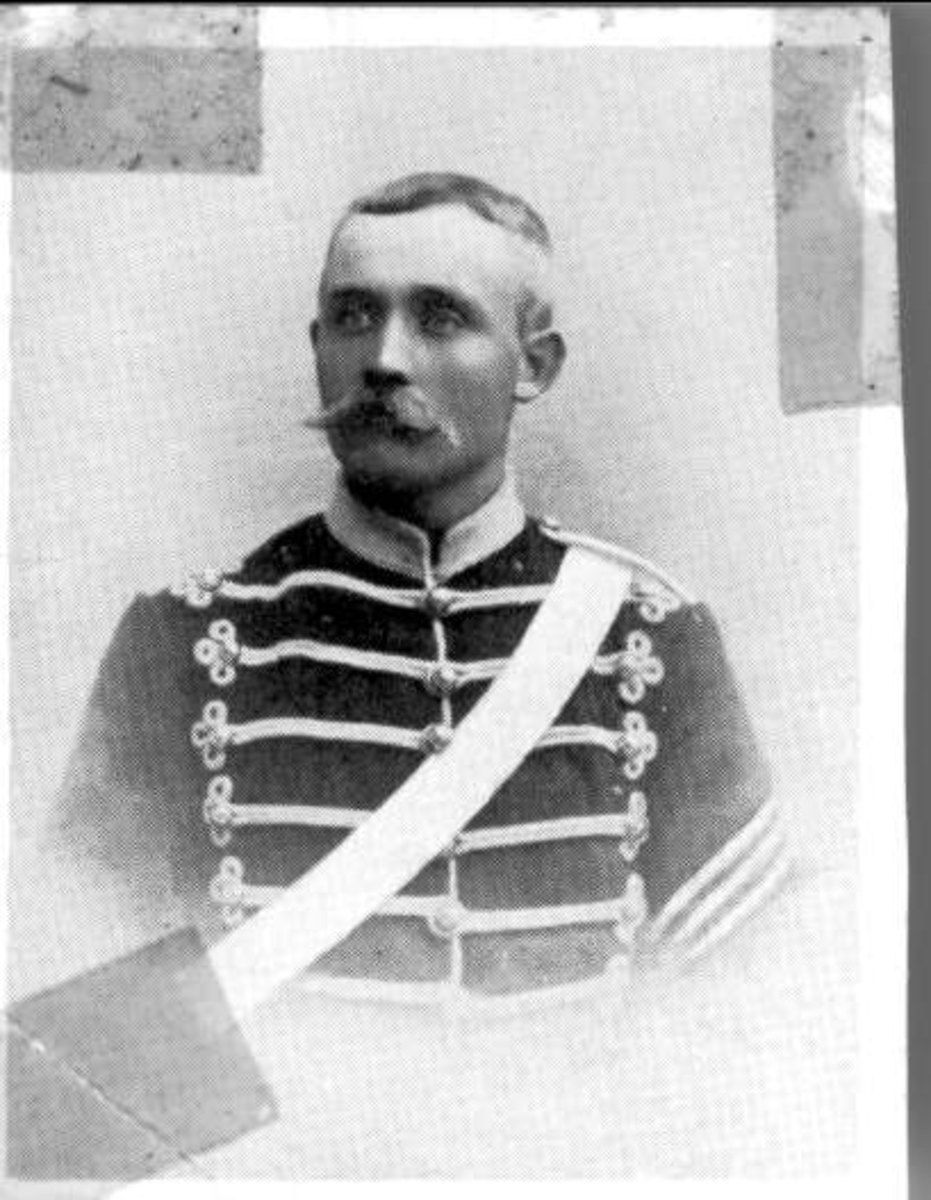 Porträtt av Livhusar Korrvin vid Rusthåll Korrvike Fellingsbro, i uniform m/ä