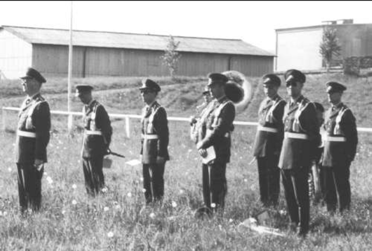 Musikkåren vid korum på hoppningsbanan öster K 3, kasern, Skövde.