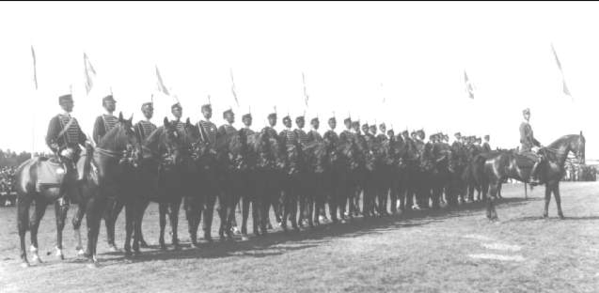 K 3-avdelning uppställt före riduppvisning på prishoppningsbanan, öster om kasern i Skövde.