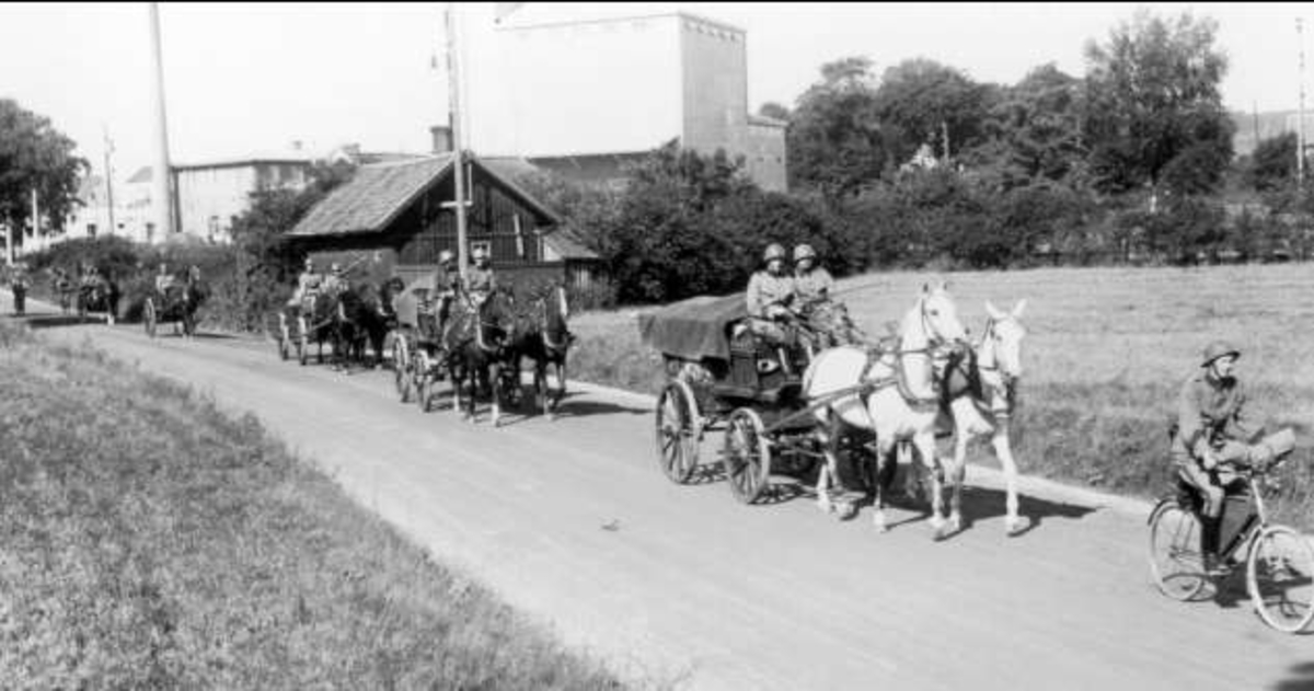 K 3:s anspända tross på Norrmalm på väg hem från övning.