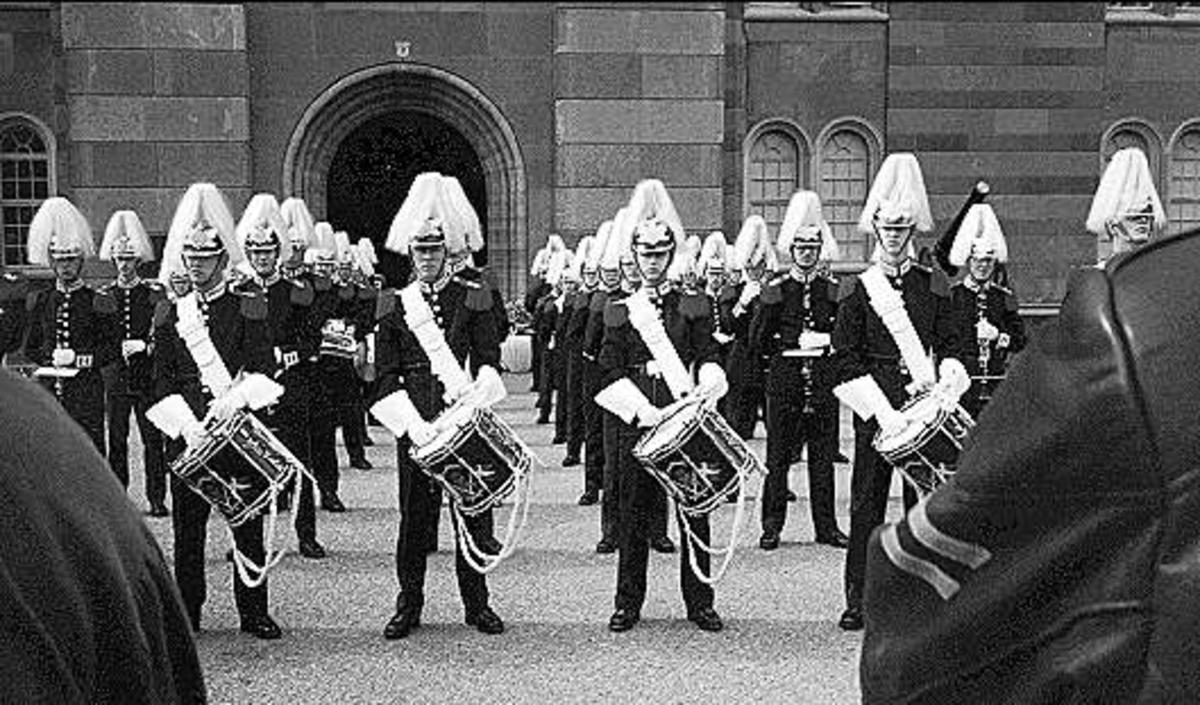 Arméns musikpluton framför kyrkvalvet vid K 3, Karlsborg på 1980-talet.