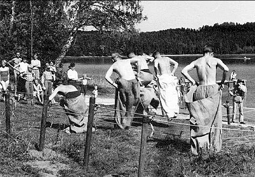 Starten har gått för säcklöpningen.