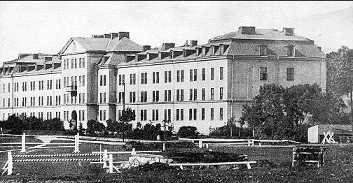 Livregementets husarers kasern i Skövde. Hinderbanan sydöst om kasernbyggnaden.