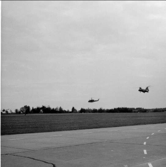 Karlsborg, F 6. Flyguppvisning med två helikoptrar i juni 1969.