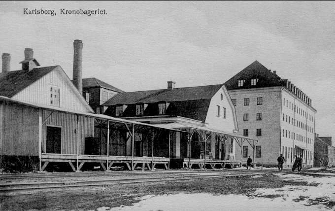 Fästningen, kronobageriet och till höger havremagasinet. Byggda år 1911 - 1912. Kortet finns ej på museet.