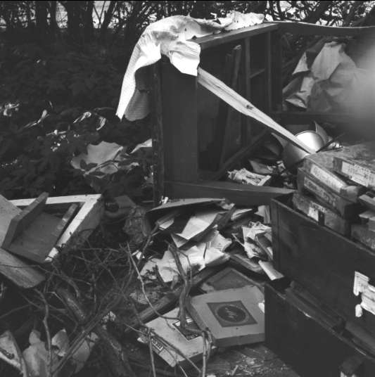 Raserat garage hos Ateljé Byqvist, Karlsborg, 1968. Neg finns.