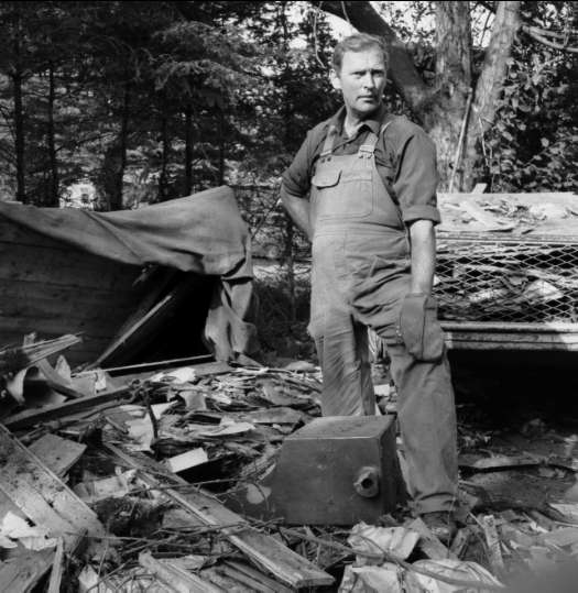 Raserat garage hos Ateljé Byqvist, Karlsborg, 1968. Neg finns.