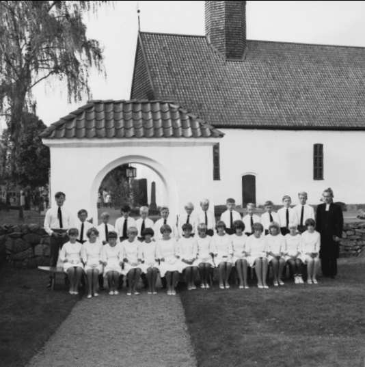 Konfirmandgrupp, Mölltorps kyrka, 23/7 1966. Deltagarlista finns i arkivet. Konfirmandlärare: Sören Thörnblad. Neg finns.