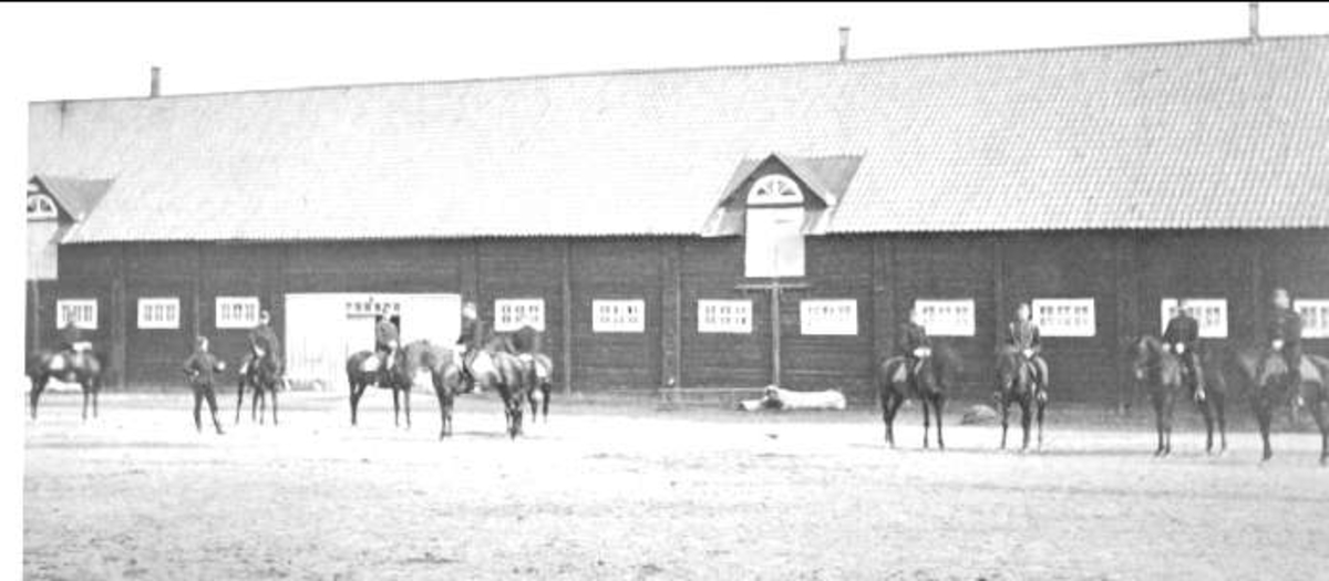 Strömsholm i augusti 1878. På gårdsplanen framför officersstallet på Strömsholm. Officerare från vänster: Thott, W von Platen, Uggla, CH von Platen, Beck-Friis, Carl Lewenhaupt, Posse, Treskow, Dyrsén.
