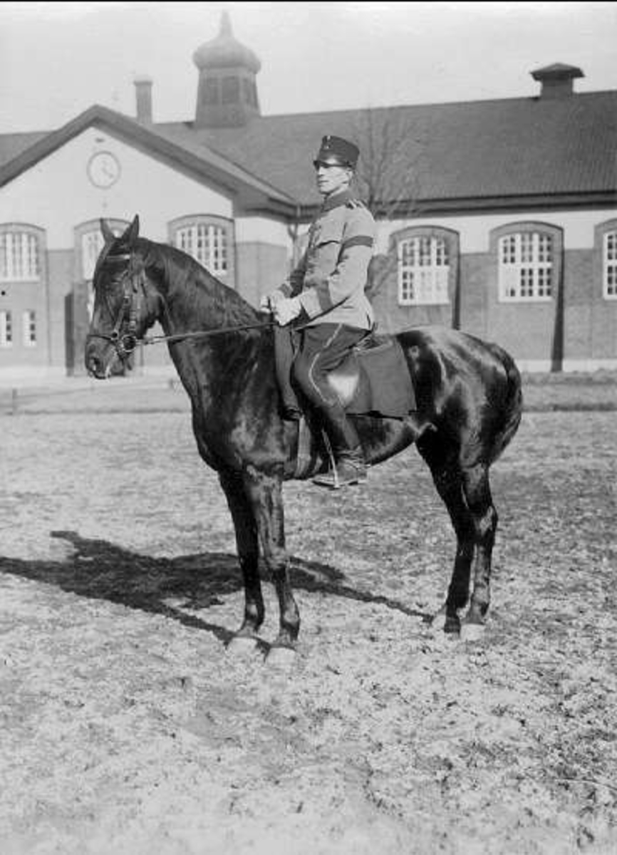 Officersaspirantskolan vid K3 i Skövde 1929-30. Lennart Engerby son till Furir Gunnar Andersson/Engerby, som var instruktör på officersaspirantskolan. Furir Wilund till häst antagligen framför J9 (P 4) matsal.
