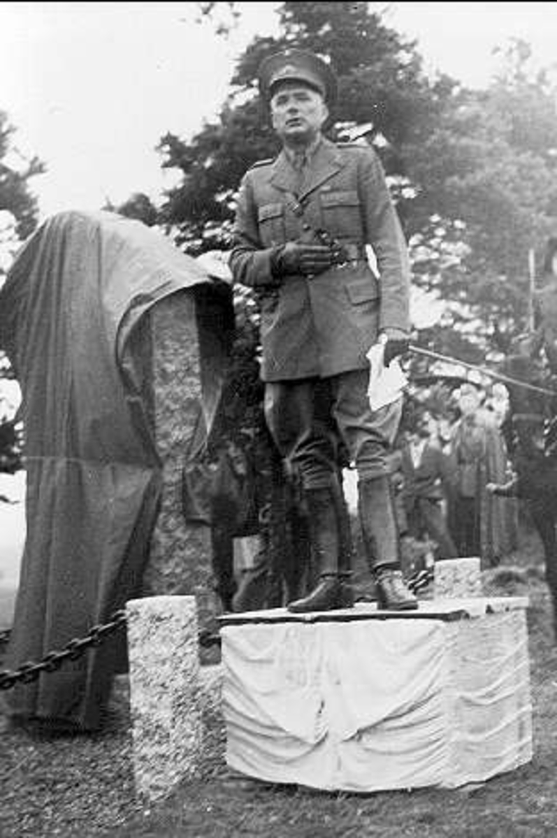 Vid Karolinermonumentet i Märsta. F.d. Sekundchefen K 1 Överste C-A Torén inviger Karolinermonumentet i Märsta.