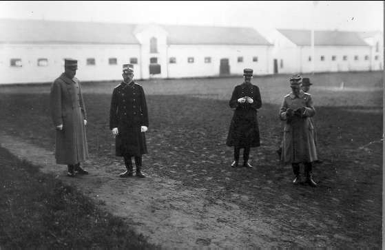 Inspektion av ridutbildningen på Strömsholm. Hingststallet i bakgrunden.