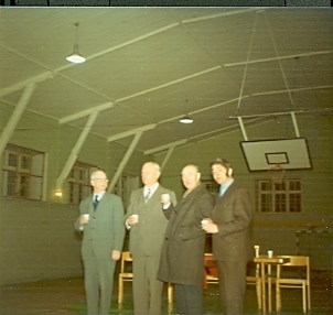Underofficerare i S2:s gymnastiksal. Troligen 1960-tal. Från vänster: Mauritz Carlsson, Stj Mauritz Ankarstedt, Tage Schultzén, Gerhard Lundgren.