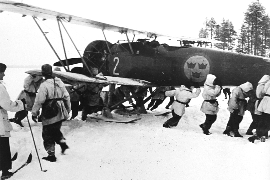 F6 Karlsborg 1941. Vinterövning i Luleå. B4 indrages i skydd. Kapten Seth till vänster. Albumet är en del av en donation från Karl-Axel Hansson, Karlsborg. Förteckning över hela donationen finns i albumet samt som Word-dokument.1