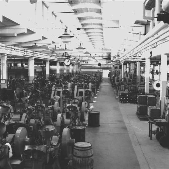 Interiörbild, Ammunitionsfabriken Karlsborg, 1961. Endast neg finns.