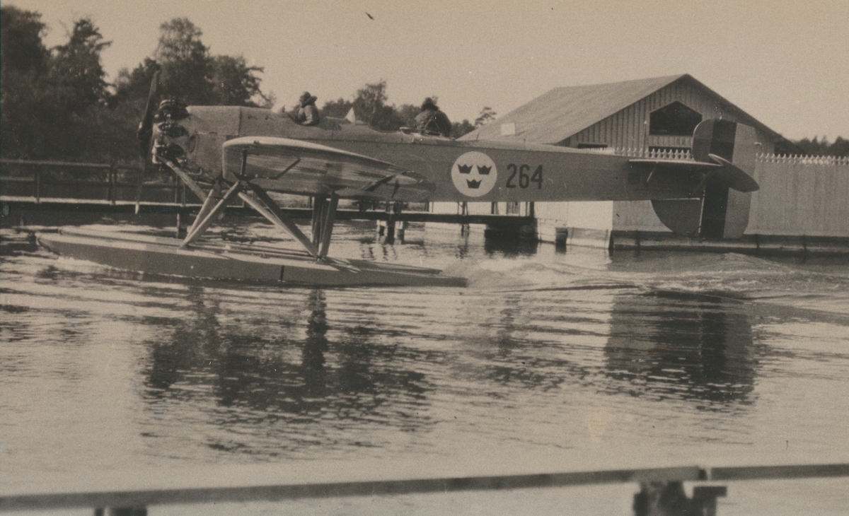 Flyget i Karlsborg före F6. Karlsborgsviken 1930. Flygplan "S5 Hansa" och dambadhuset.
