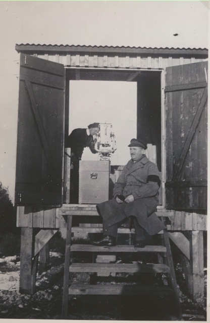 Ammunitionsfabriken i Karlsborg slutet 1800-tal.Styresmannen och kapten Widmark justerar fototeoliterna.