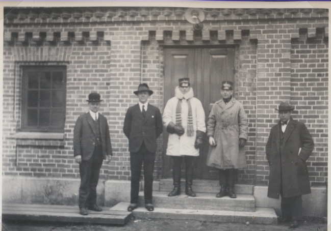 Ammunitionsfabriken i Karlsborg slutet 1800-tal. Verkmästare Malmlöf, kapten Widmark, kapten Årmannmajor Dahlerus, verkmästare Forsberg.
