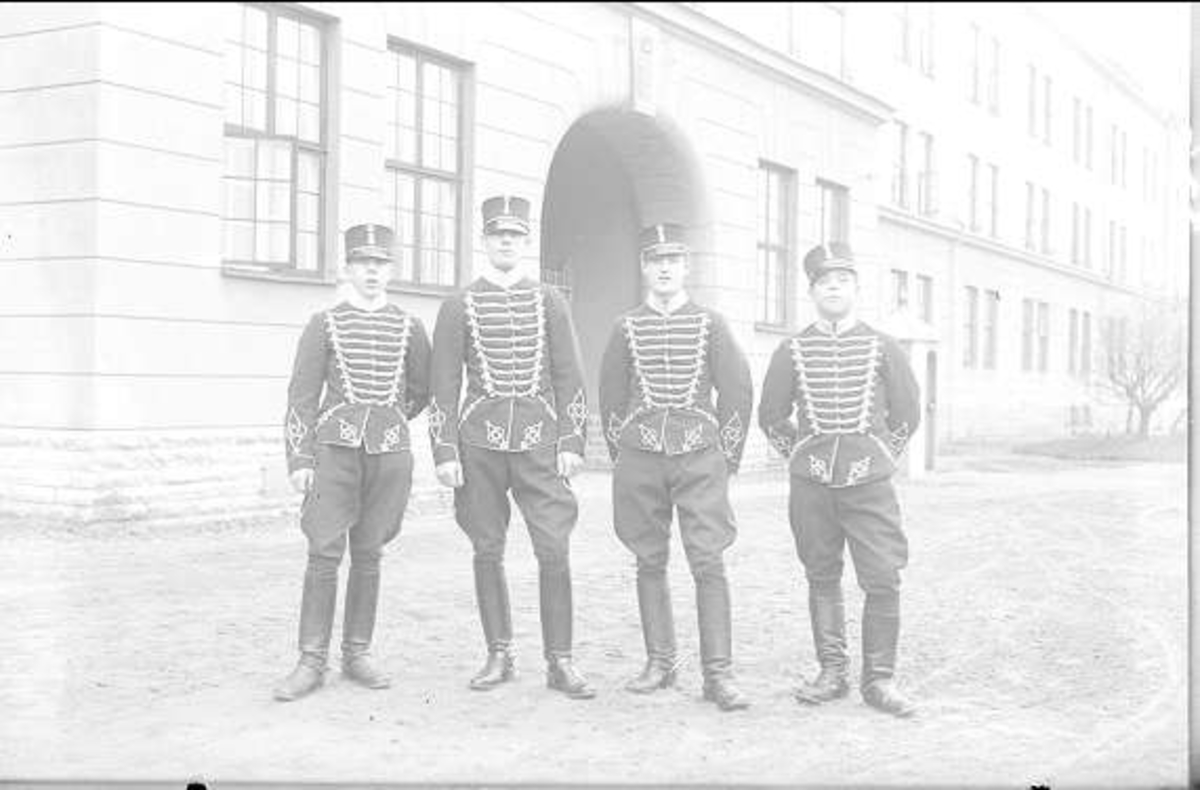 Livhusarer i uniform m/1895 (m/ä) utanför valvet vid K 3