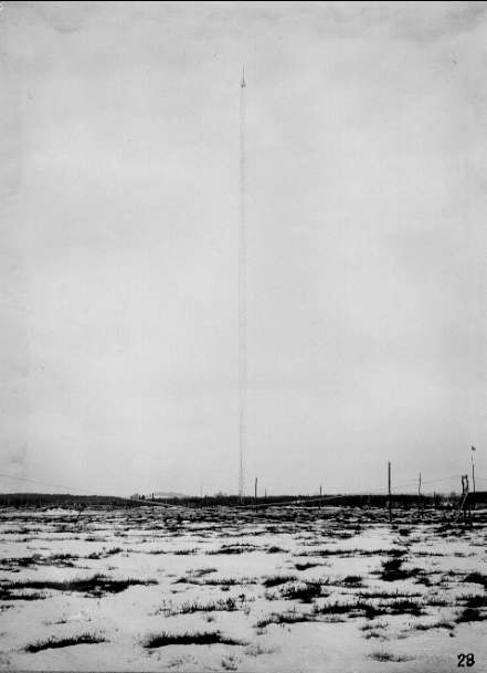 Karlsborgs radiostation i Kråk. Från mastresningen, år 1916. Masterna är konstruerade av professor K Ljungberg, Stockholm, var 210 m höga och vägde 25 ton. Foto: Alfred Sjöberg, Karlsborg. Masterna revs i mars år 2001.