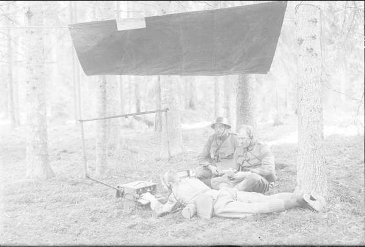 Sambandsförsök med olika signalapparater, bland annat 2 watts radio. Ubefkurs.