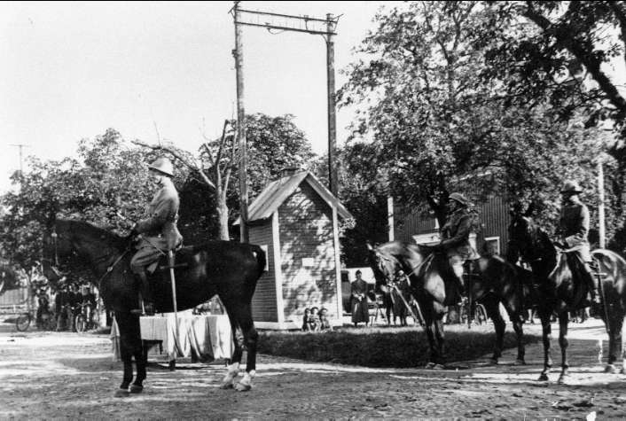 Luftvärnet, ceremoni med ryttare på fästningstorget. Omkr 1940 - 45.