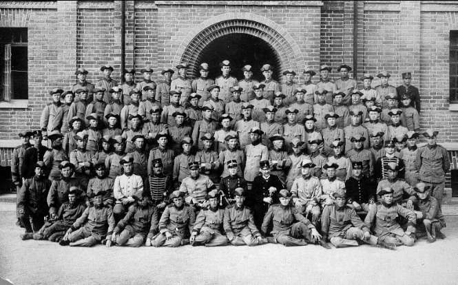Fästningen, artillerisoldater framför slutvärnet omkr. 1923 - 1924. Foto: A Sjöberg, Karlsborg.