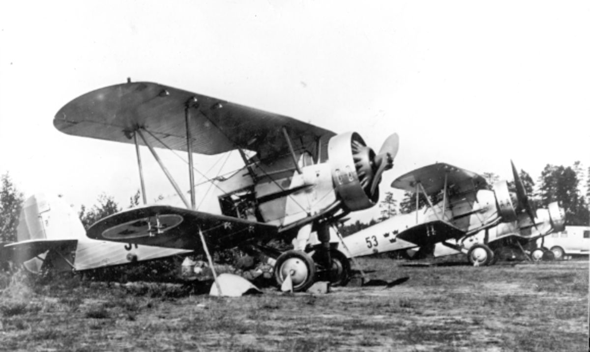 Karlsborg 1938. Flygplan Hawker Hart (B4). Hemmabasen var F1 i Västerås.