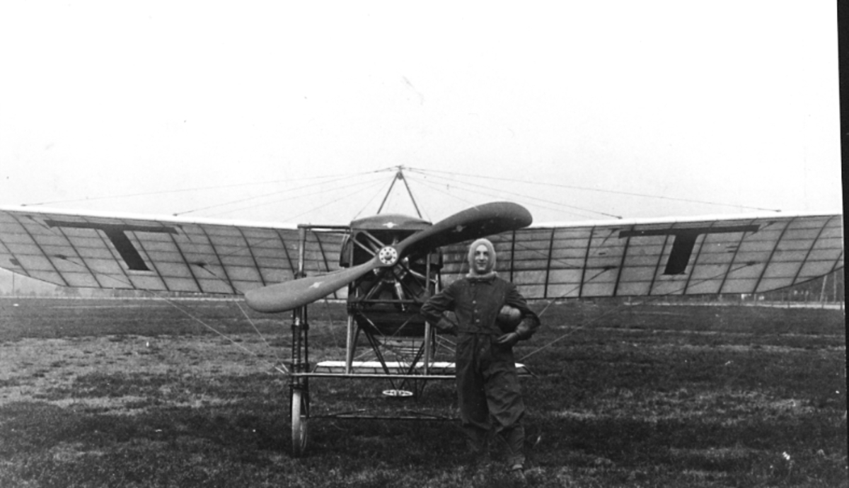 1915. Underlöjtnant Arvid Bergman vid flygplan Blériot.