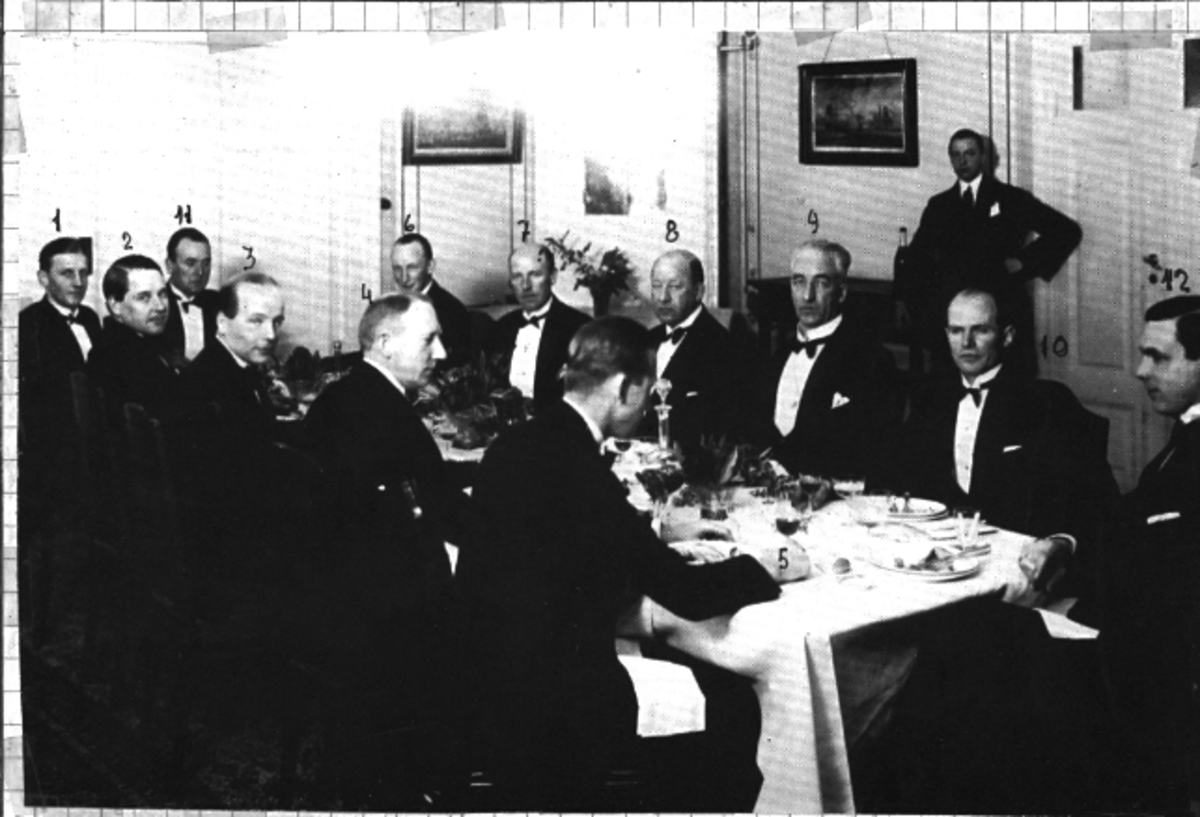 1934. Sjöofficersmässen där deltagare i 1924 års Marina Flygskola firade 10-årsjubileum. Alla utom 3 gick över til flygvapnet. Namnlista finns i albumet samt som Word-dokument.