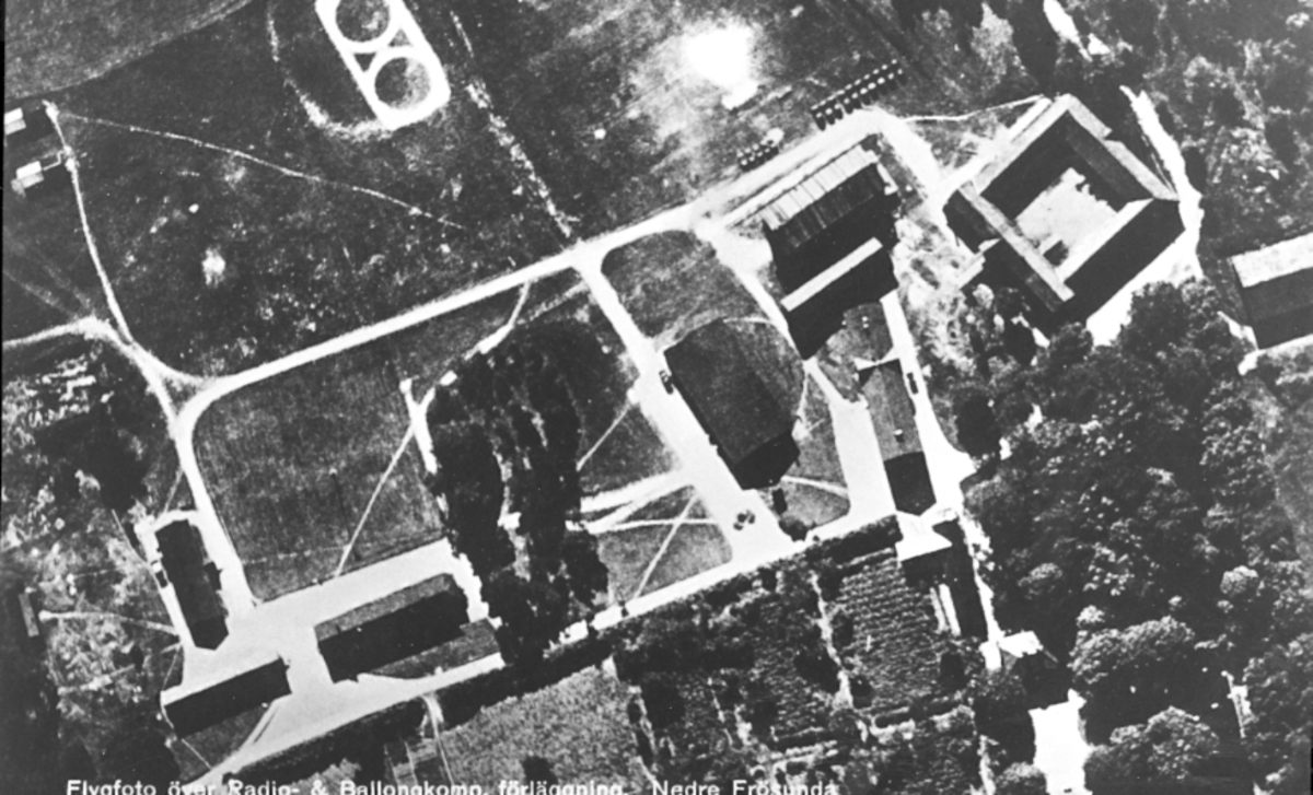 Ca 1924. Flygfoto över Radio-och Ballongkompaniet, nedre Frösunda.