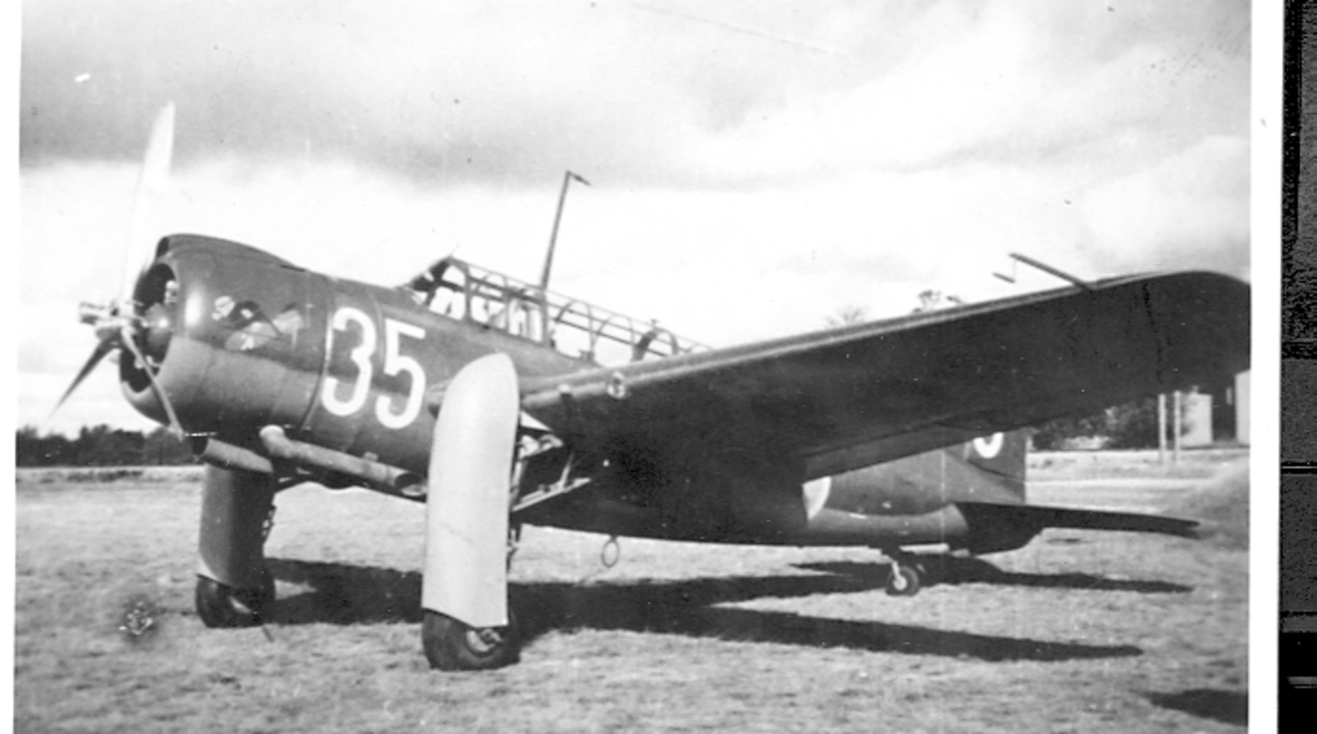F6 Karlsborg. Flygplan B 17 med "Klot-Johan" påmålad.