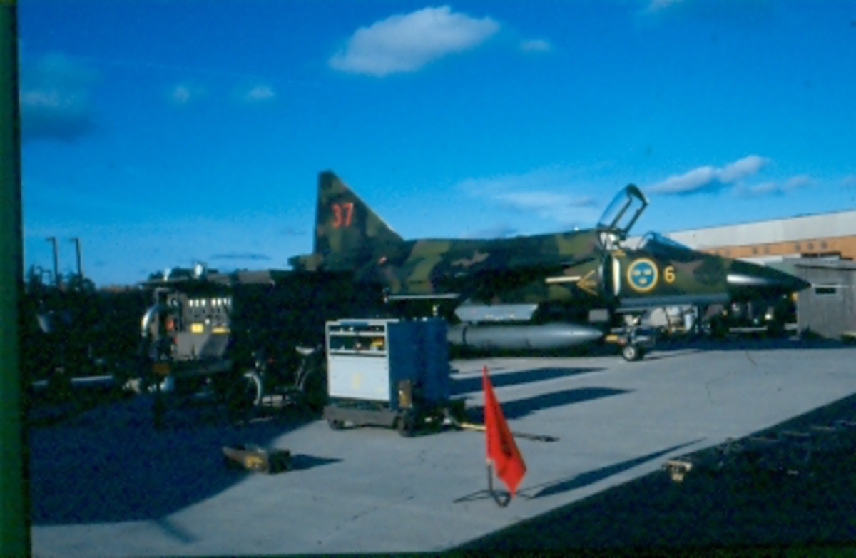 Titel: F6 Karlsborg. Klargöring av flygplan.