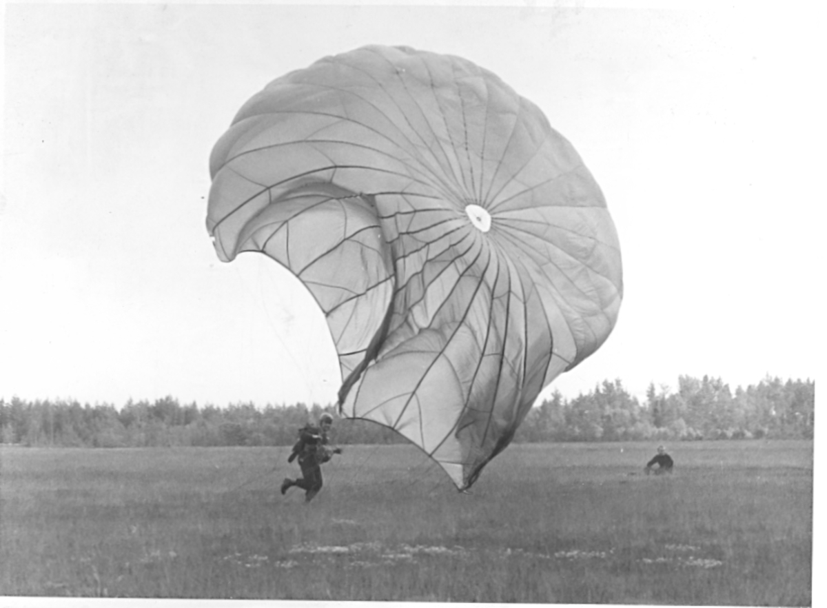 Titel: Fallskärmsjägarskolan Karlsborg i början av 1960-tal. Fallskärmshoppning.