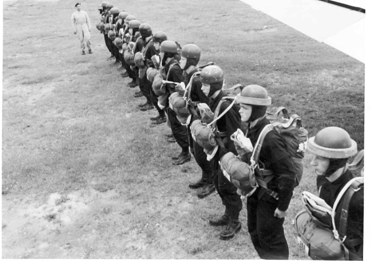 Fallskärmsjägarskolan Karlsborg i slutet av 1950-tal.Inför fallskärmshoppning.