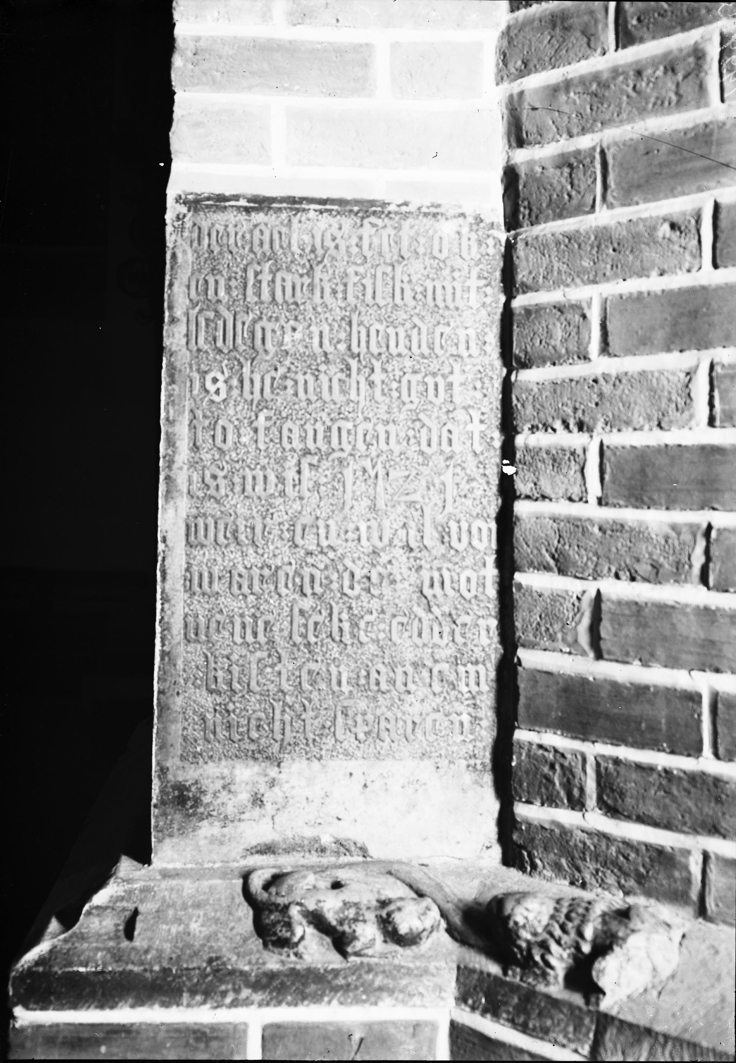 Beskrivning: Pelare, "ålpelaren", med inskrift och skulptur av Adam van Düren, 1521.
