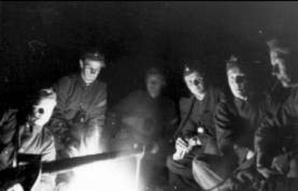 Livhusarer kring elden.