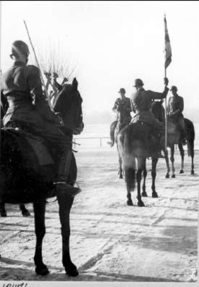 Standarföraren löjtnant Anders Westergren lämnar av standarvakten till sekundchefen.