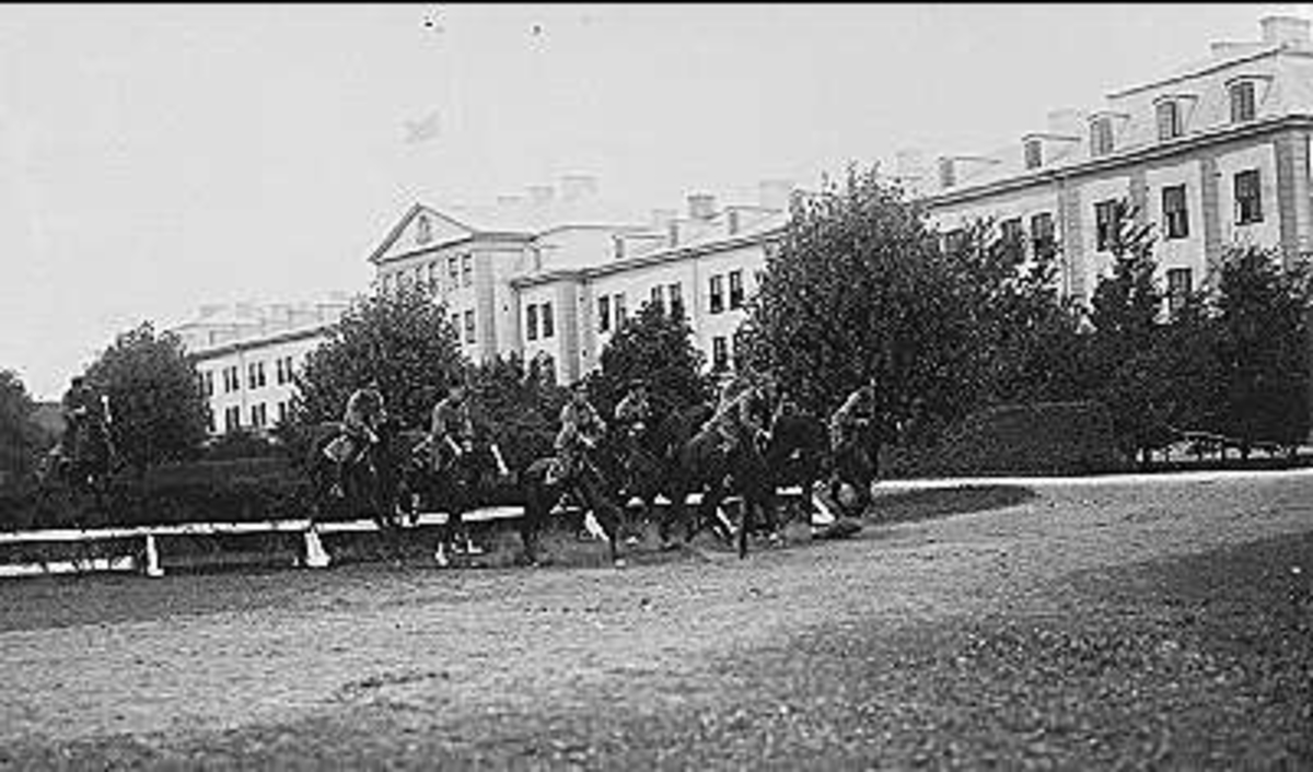 1930 - talet. Regementslöpningen - furirjaktlopp. Hindret omedelbart söder kasern i Skövde.