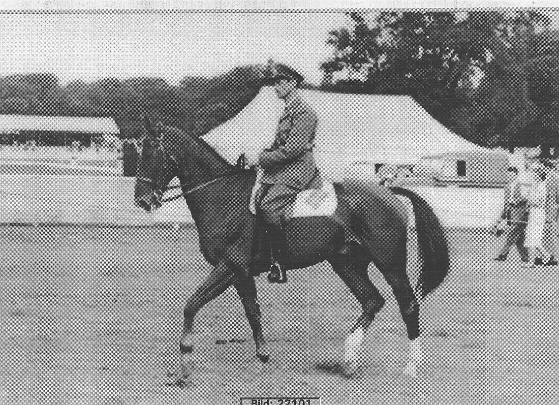 Foto från blädderblocket om K3, livhusarernas tävlingsryttare. Dressyrprovet klart EM - 59, Tom Raid.