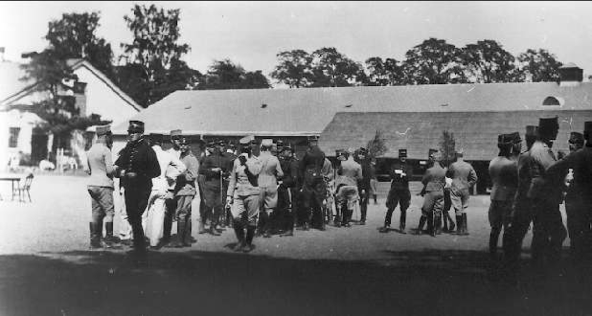 Artilleriet, ridutbildning på paddocken, omkring år 1900.