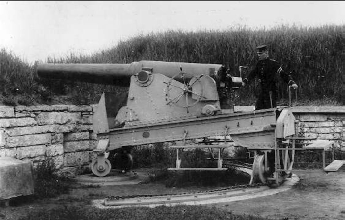 Artillerifurir Hallström framför 17 cm kanon m/1876 vid Karlsborgs fästning