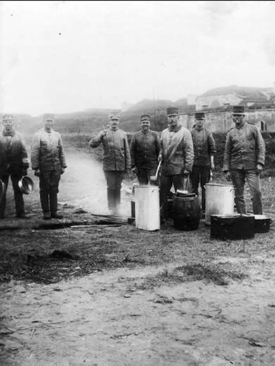 Soldater ur Göta ingenjörkår 1913-14. Kokning bakom slutvärnet.